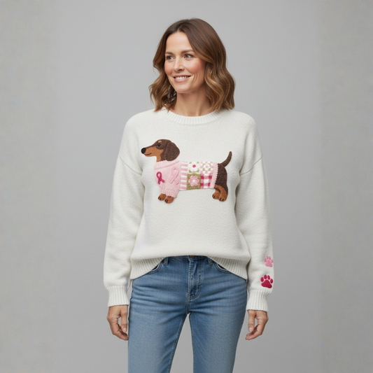 Naoni Gebreide Trui | Dames Sweater, Zacht Wolvilt, Schattig Teckelpatroon