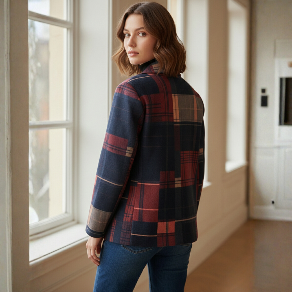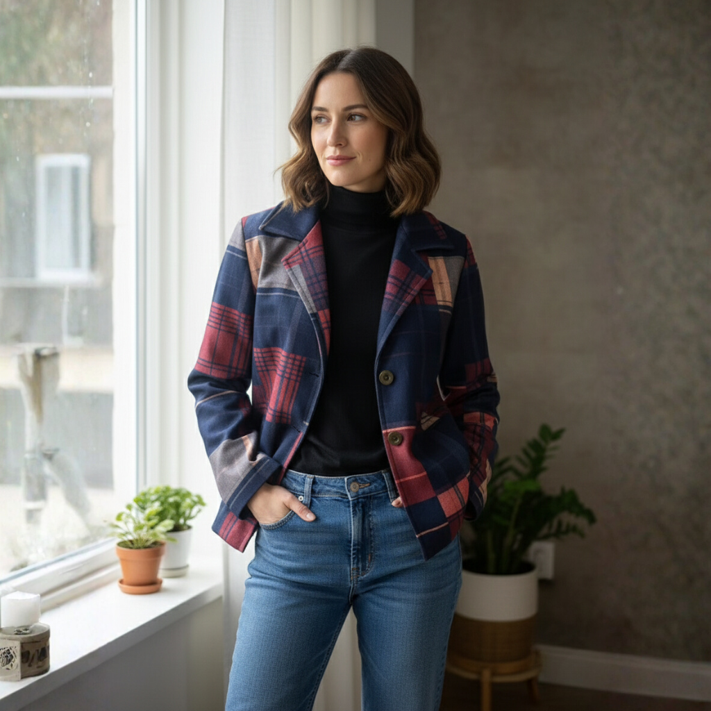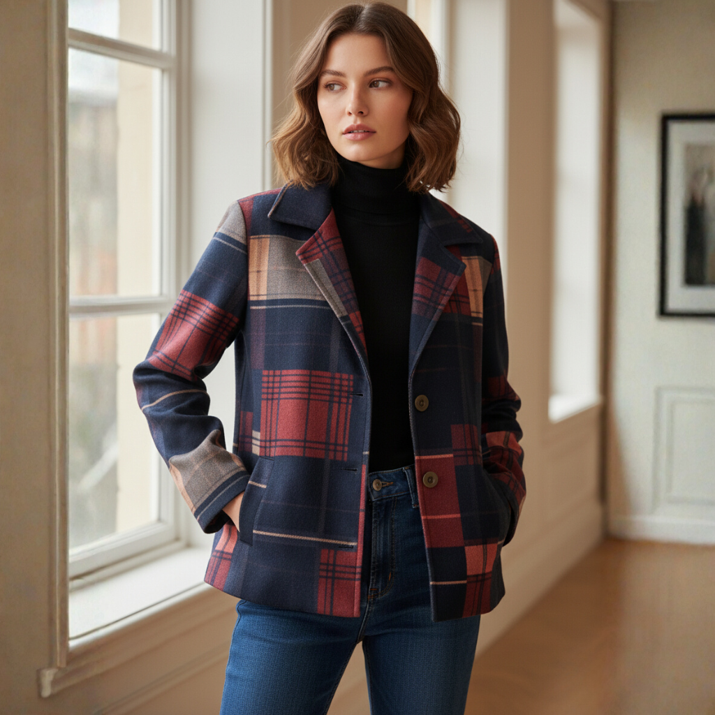 Caro Dames Jas | Wollen Overjas, Stijlvol Ruitpatroon, Comfortabele Pasvorm